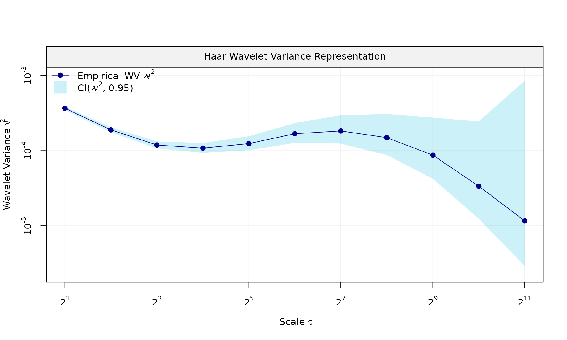 where is the estimated wavelet variance computed on the estimated residuals and is the pre-computed estimator of the parameter , with being any positive-definite matrix.